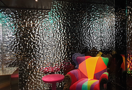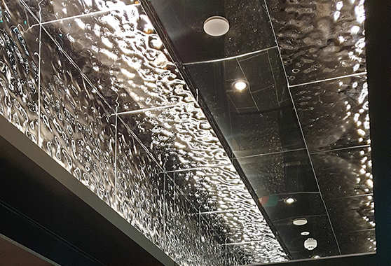 불규칙하게 흐르는 물결무늬가 마치 움직이는 듯한 반사 효과를 만들어내며, 공간에 생동감을 더합니다.