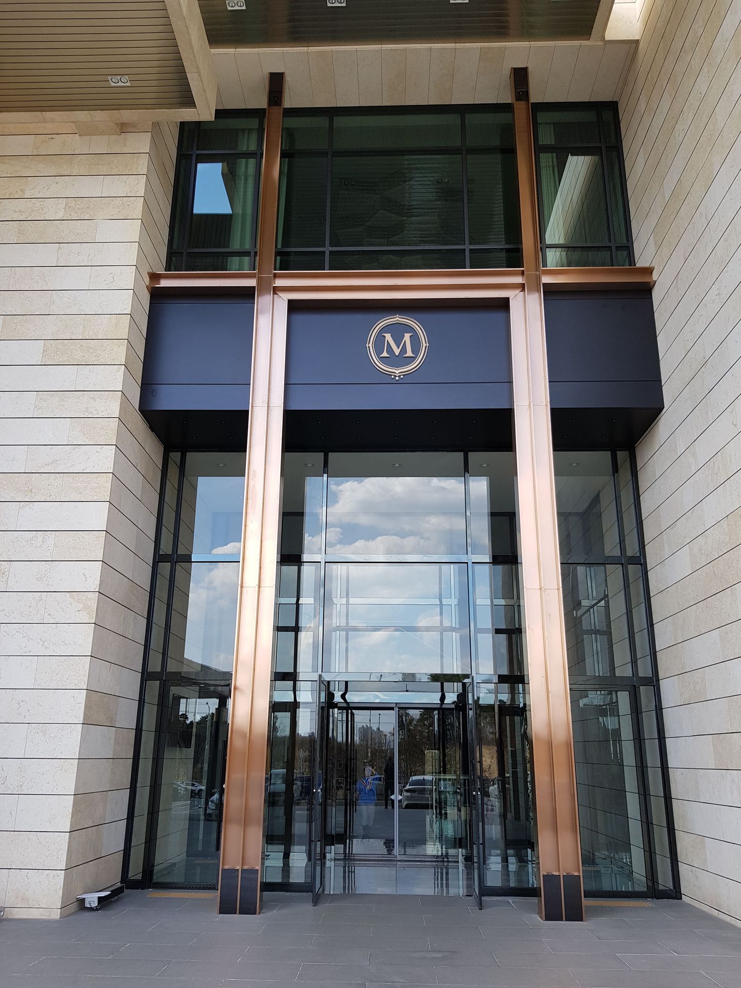 Whiskey Brown MR은 입구 구조물의 프레임과 장식에 적용되어 따뜻하고 고급스러운 분위기를 연출하며, 공간에 품격 있는 첫인상을 남깁니다. 반면, Galaxy Black MR은 창문 틀과 프레임에 사용되어 차분하면서도 강렬한 대비감을 주어 전체 공간을 한층 더 세련되게 완성합니다.