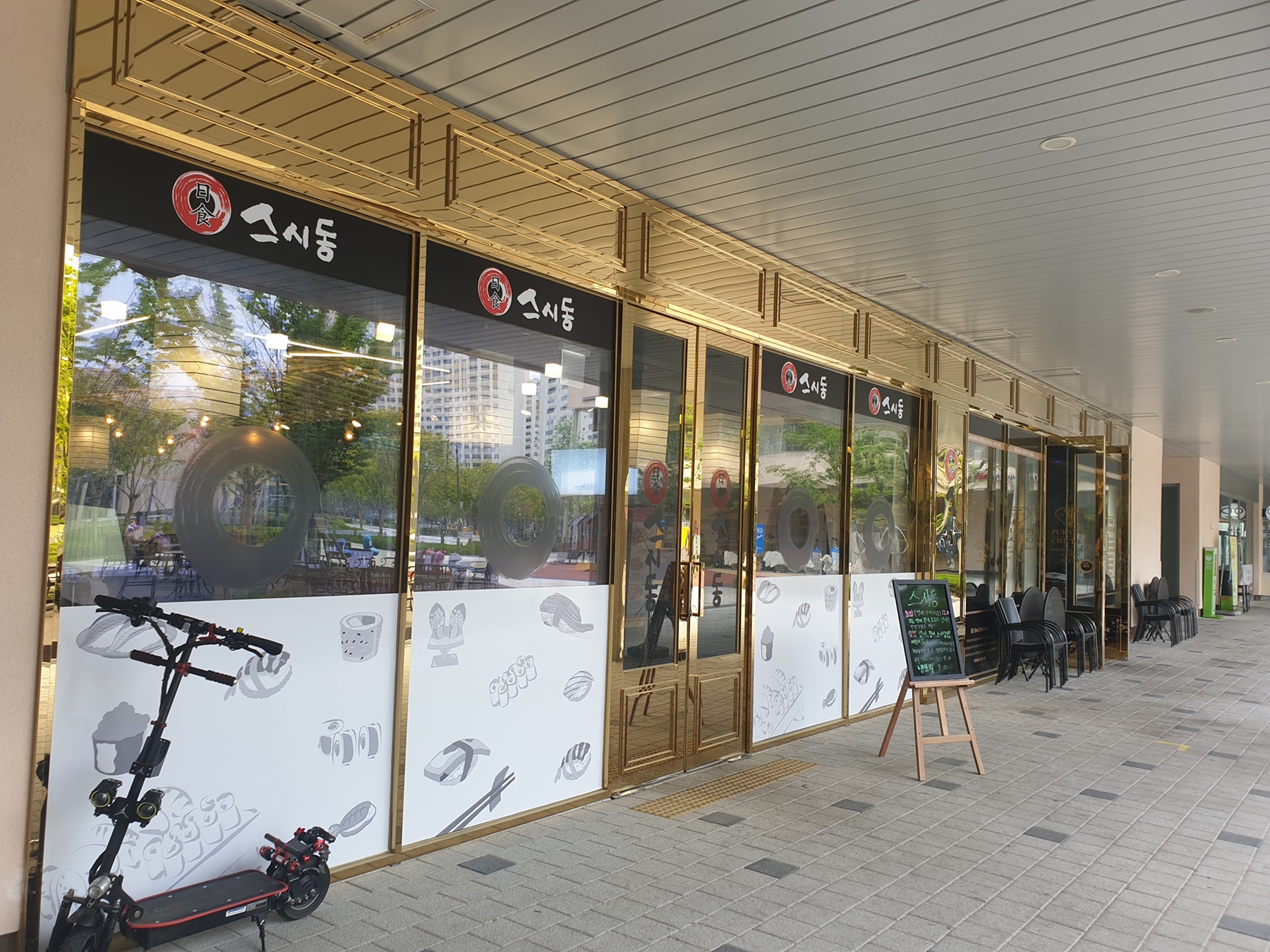 Gold MR의 만남. 상가의 출입문은 Gold MR 소재로 마감되어, 금빛의 반사감이 공간의 첫인상을 강렬하게 이끕니다. 낮에는 주변 환경을 고급스럽게 반영하고, 밤에는 인공 조명과 어우러져 은은하면서도 화려한 빛을 발산합니다. 이 황금빛 포인트는 상가의 출입부를 돋보이게 하며, 방문객에게 세련되고 품격 있는 이미지를 전달합니다.