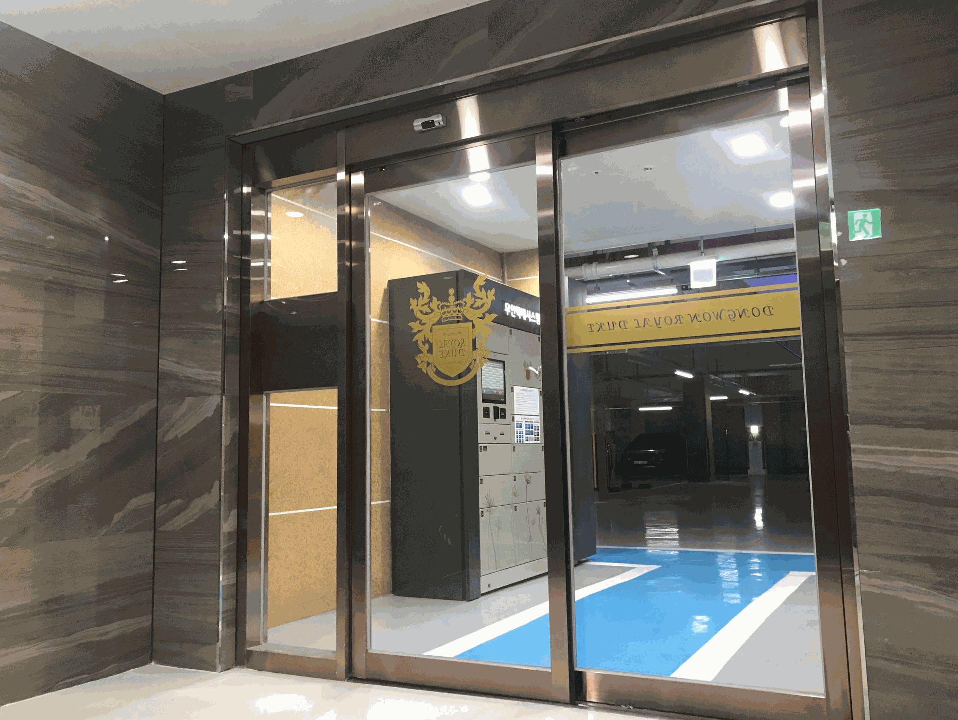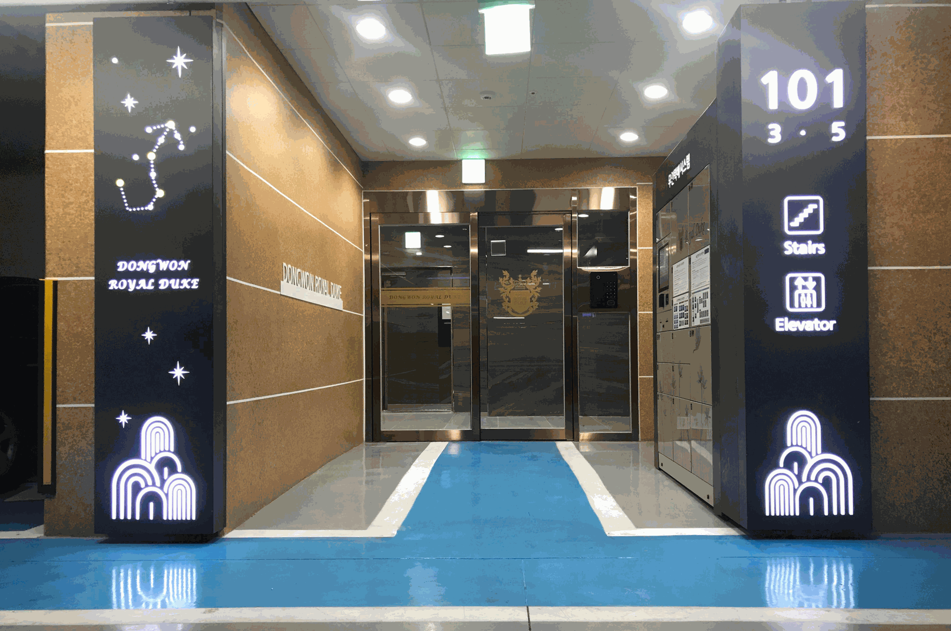 아파트의 출입문은 Whiskey Brown HL 소재로 마감되어, 차분하면서도 견고한 인상을 연출합니다. 브라운 톤의 헤어라인 질감은 은은한 광택과 깊이감을 더해 입구를 안정적이면서도 고급스럽게 완성합니다. 이 마감은 주거 공간의 첫인상을 따뜻하고 세련되게 전달하며, 일상 속 품격을 높여줍니다.