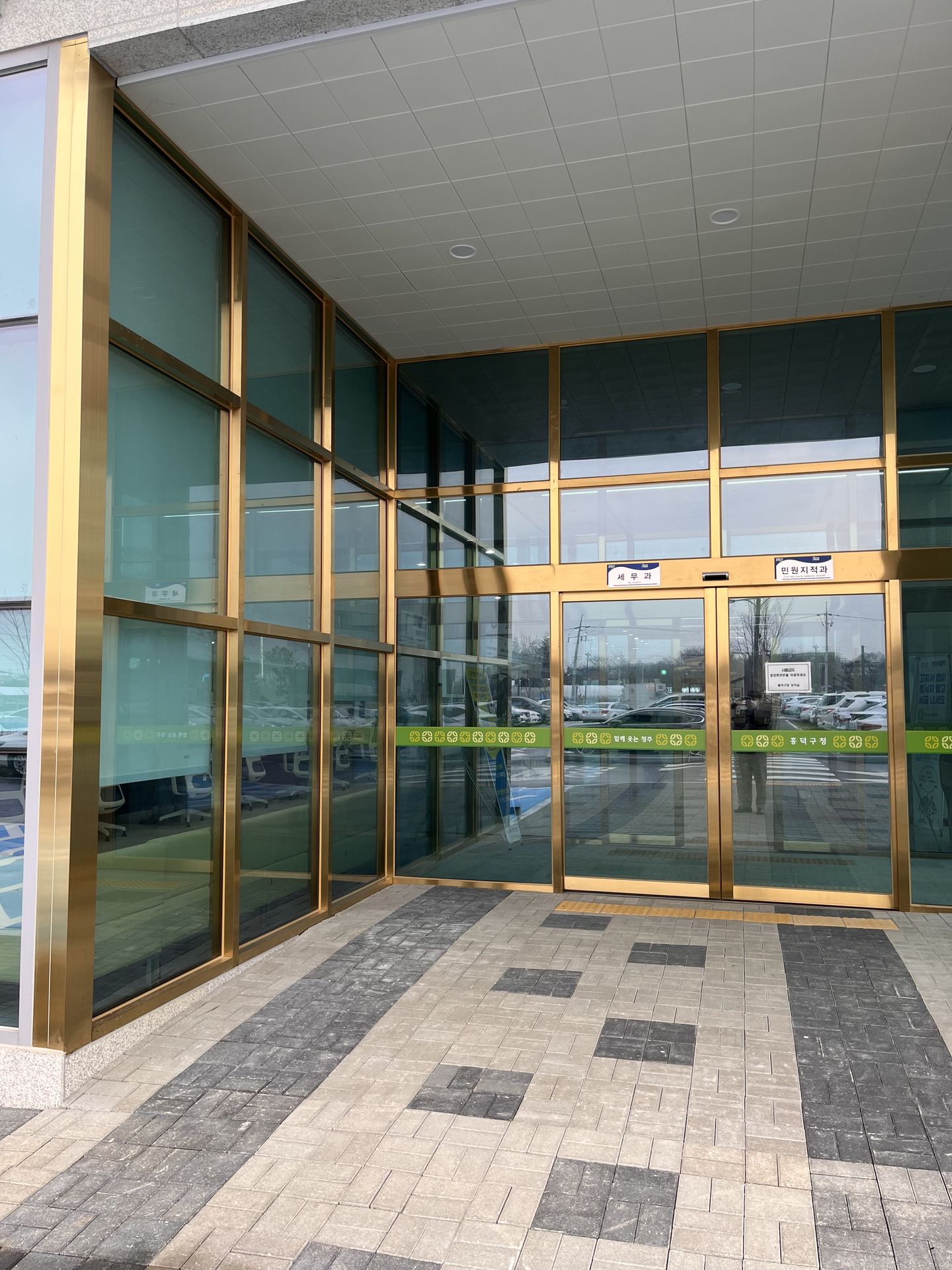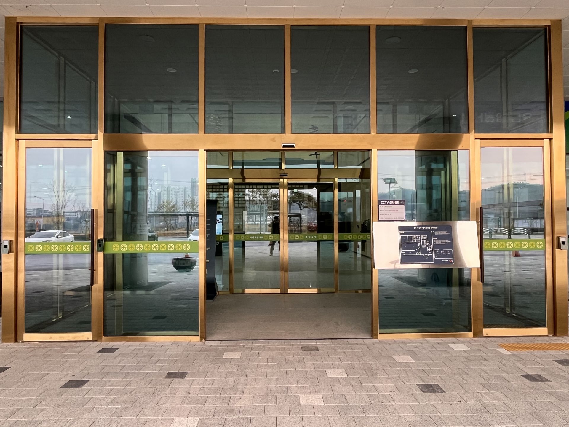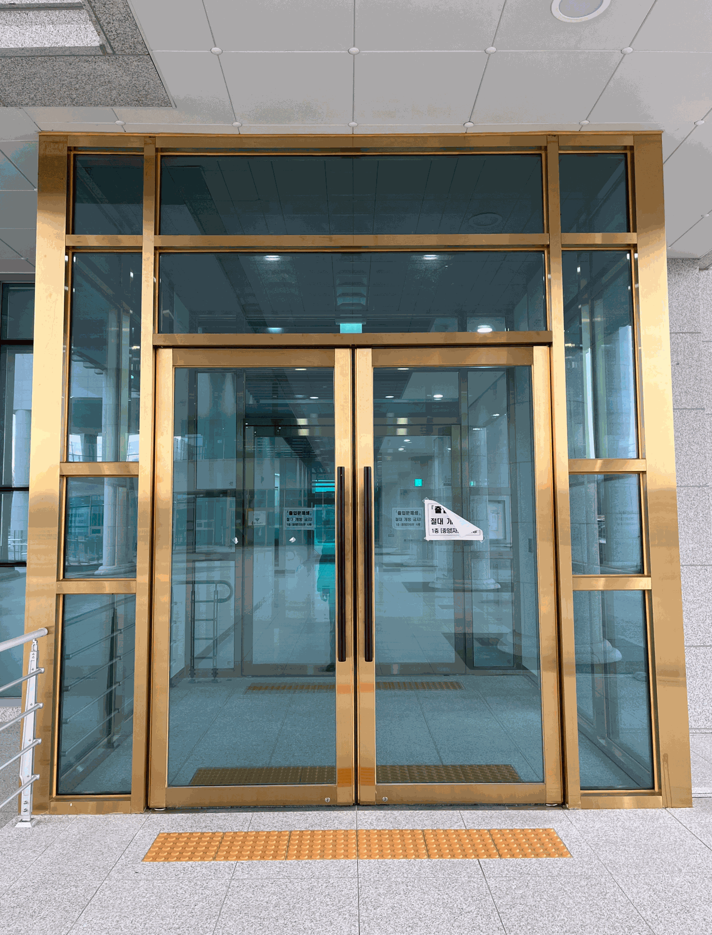 Gold HL의 만남. Gold HL 마감은 건물 출입문과 사무실 입구 프레임에 사용되어, 은은한 금빛이 공간 전체를 고급스럽고 안정적인 분위기로 감쌉니다. 방문객과 직원 모두에게 세련되고 환영받는 느낌을 제공하며, 업무 환경의 전문성과 공간의 품격을 동시에 강화합니다.