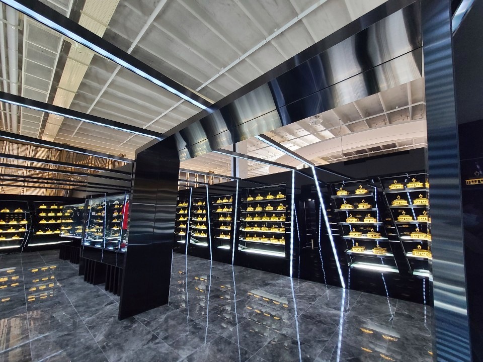 Galaxy Black HL을 주요 요소 전반에 적용하여 전시 공간의 배경을 차분하고 단단하게 잡았습니다. 깊은 블랙 톤과 섬세한 헤어라인 질감이 빛을 부드럽게 받아들이며 반사를 절제해 작품과 관람 동선이 또렷하게 드러납니다. 벽면과 문틀 조명 선반이 동일한 표정으로 이어지면서 공간에 일관성과 집중력이 생기고, 군더더기 없는 현대적 분위기가 전시의 서사를 조용히 지지합니다.