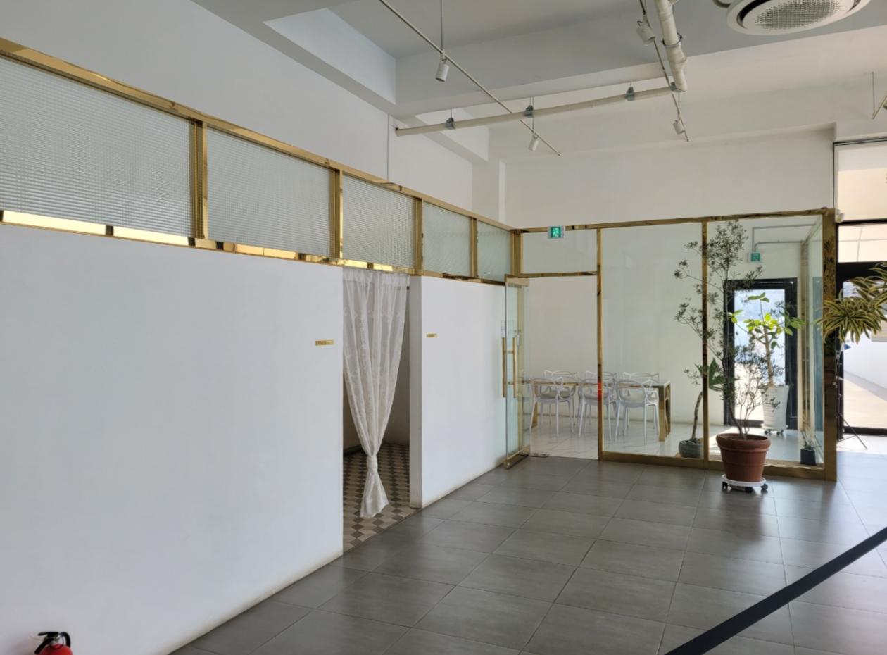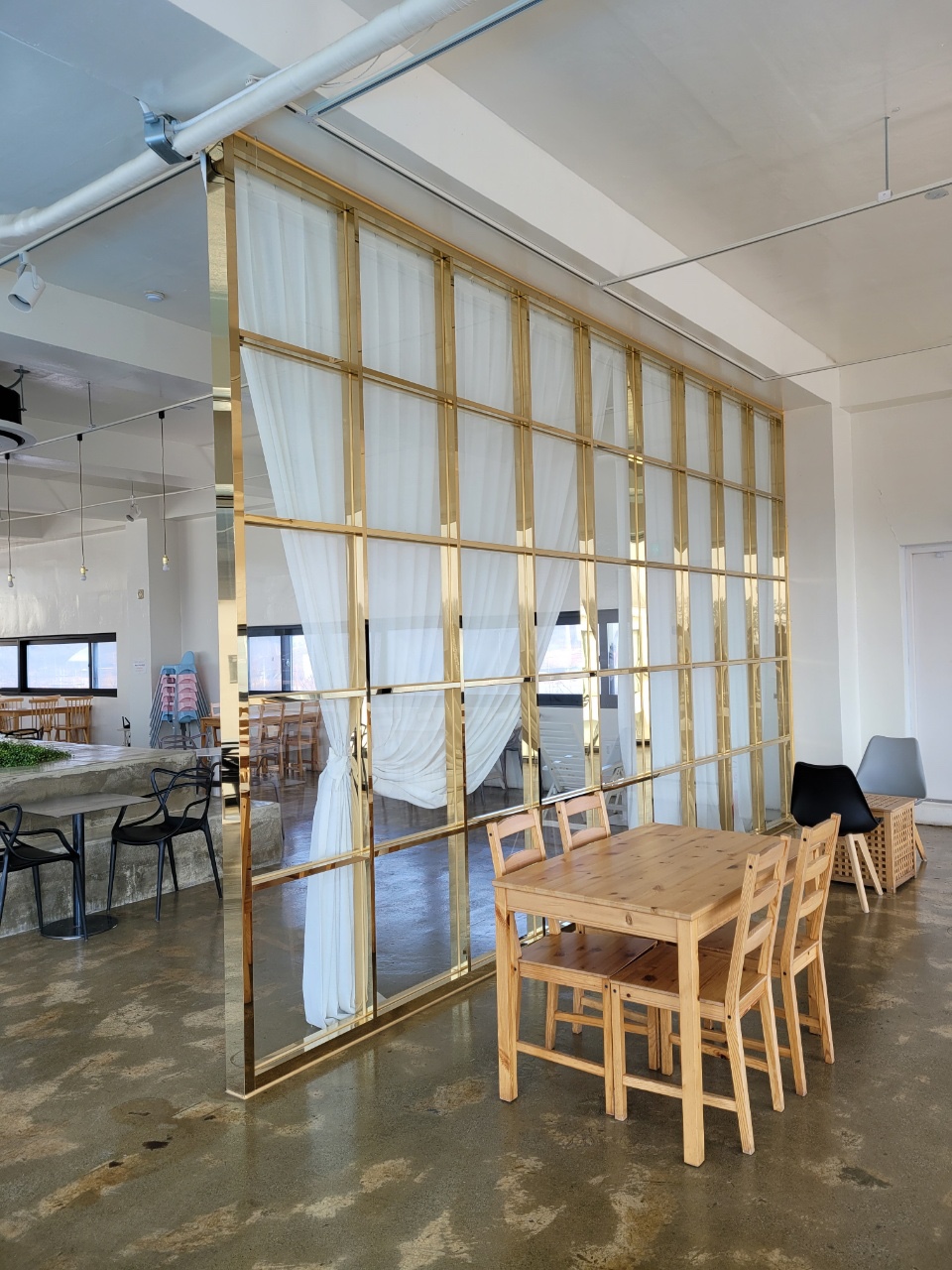 Gold MR을 앉는 공간과 칸막이 프레임에 적용해 따뜻한 금빛이 좌석군을 부드럽게 감싸도록 했습니다. 표면이 빛을 고르게 퍼뜨려 시야가 편안해지고, 좌석의 경계가 자연스럽게 구분되어 대화를 위한 아늑한 분위기가 형성됩니다. 목재 석재 패브릭 등 다양한 재료와도 조화롭게 어우러지며, 전체 공간은 편안함과 고급스러움을 겸비한 휴식의 무드로 완성됩니다.