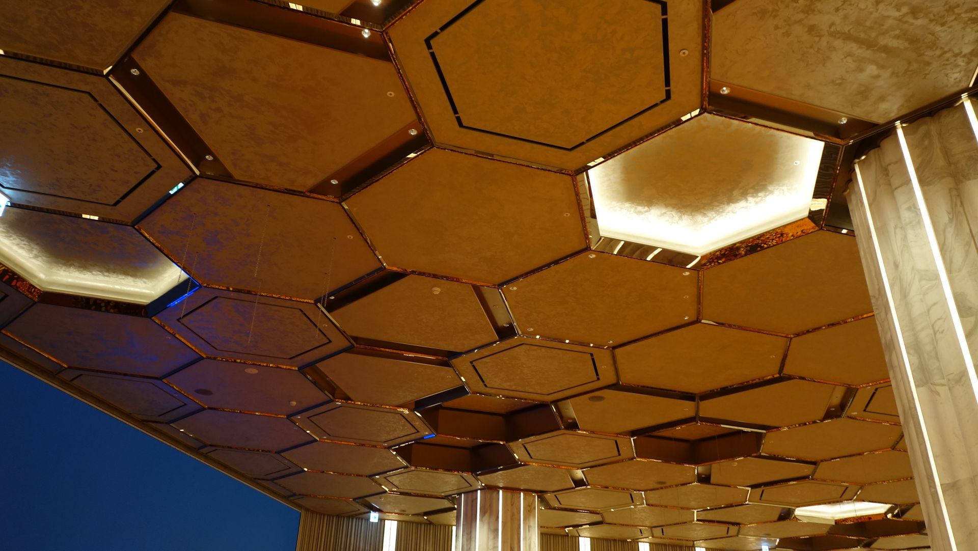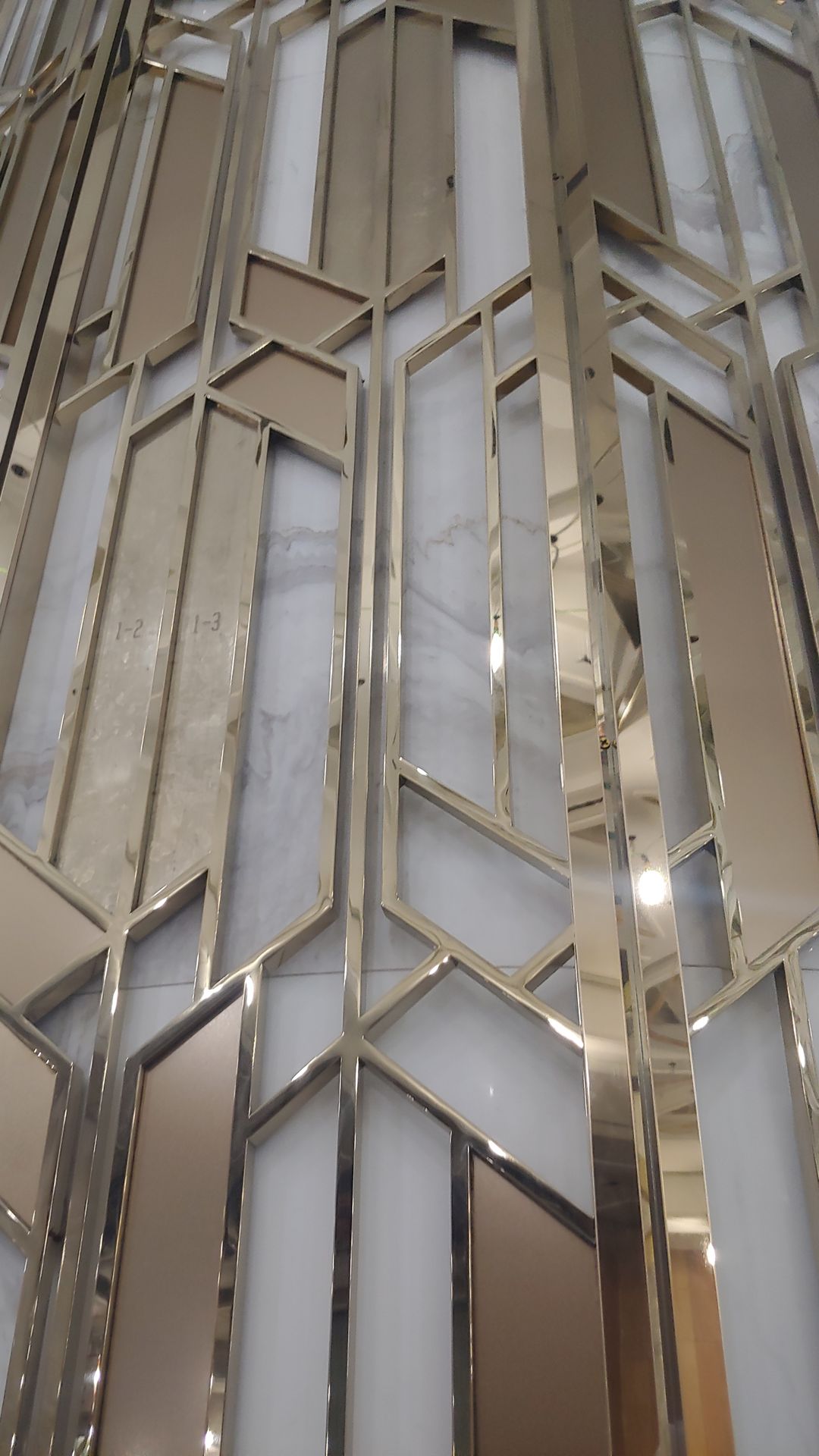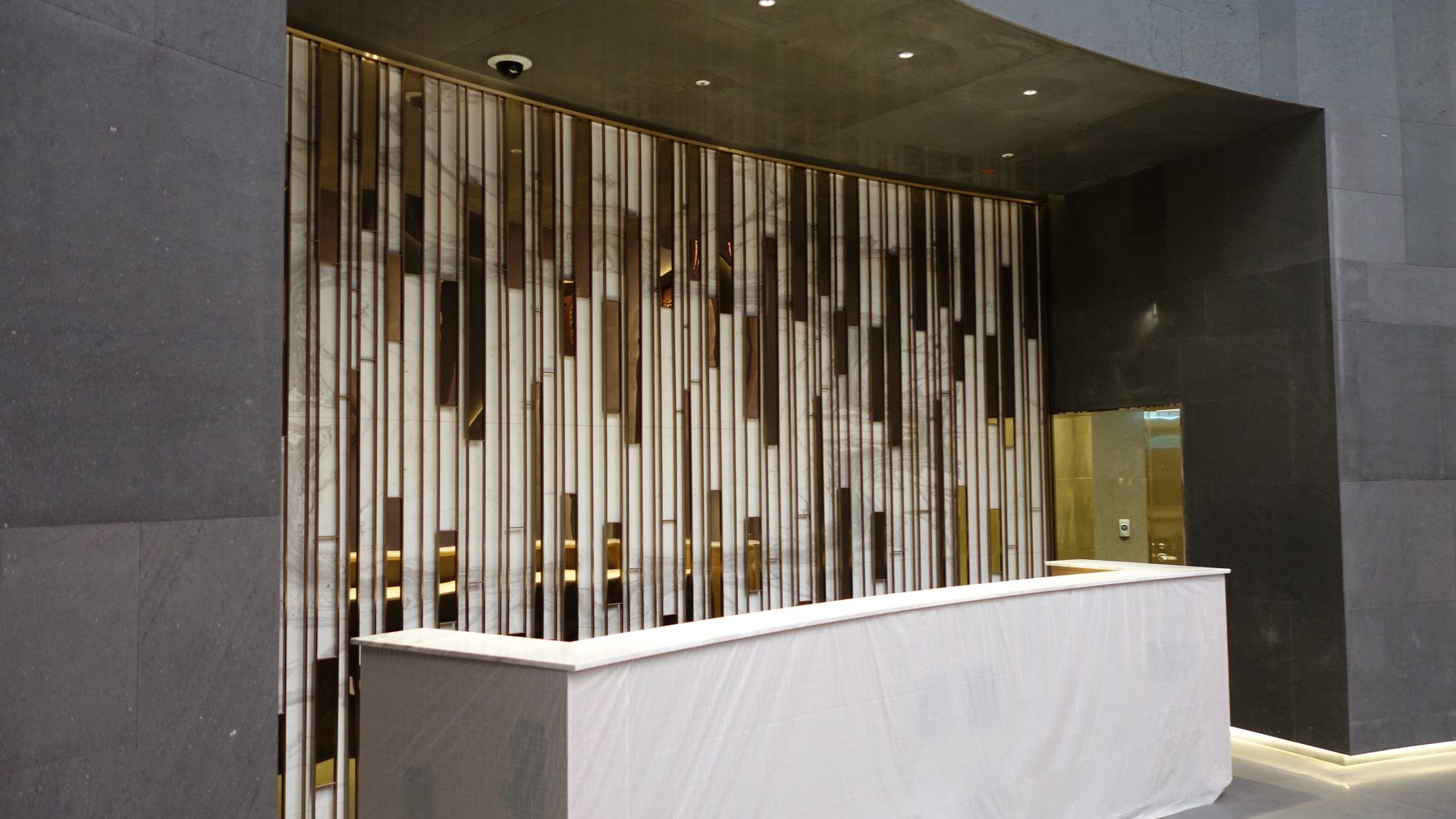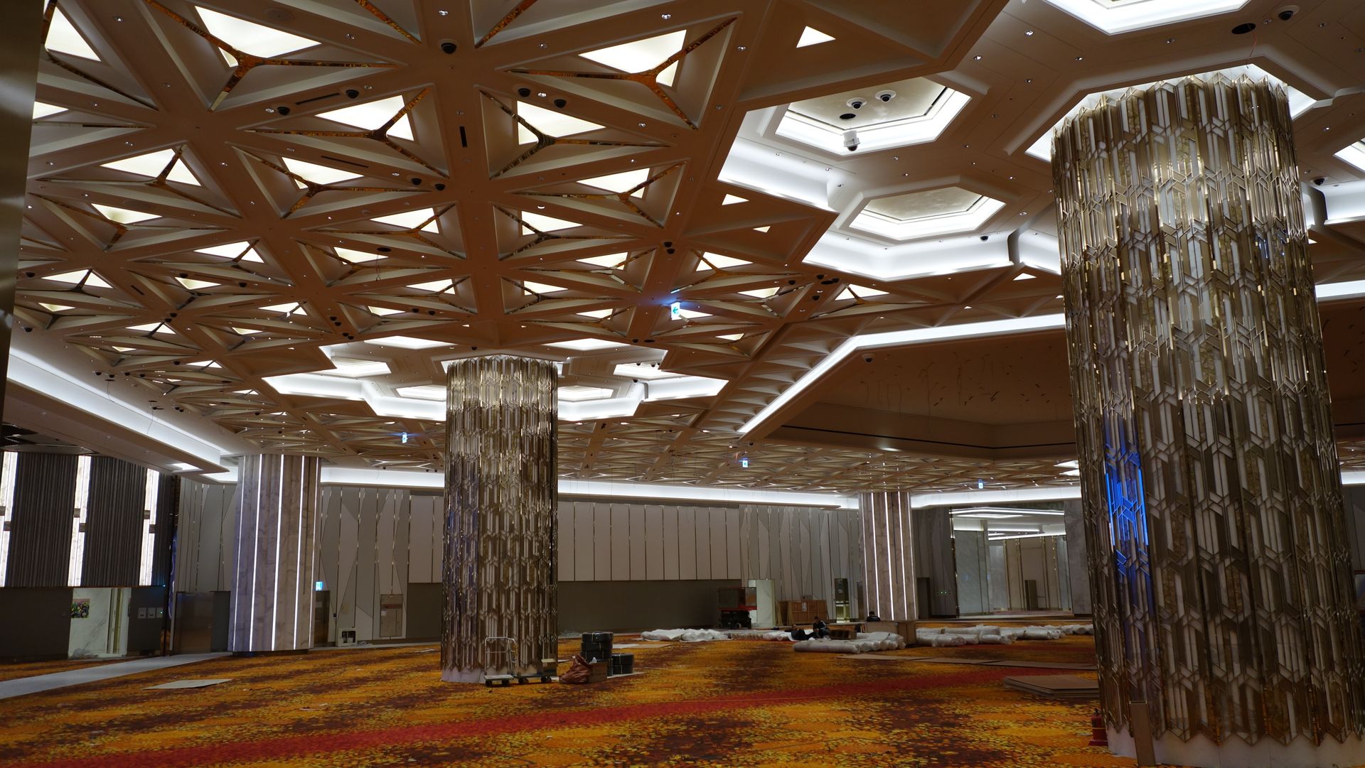 호텔 카지노 곳곳에는 Champagne Gold MR이 적용되어 화려한 패턴을 선보입니다. 기둥과 벽, 천장 등 다양한 위치에 사용되며, 식물 패턴이나 건반 같은 디자인이 리듬감 있게 이어집니다. 골드의 은은한 반짝임은 카지노 공간의 긴장과 즐거움을 더욱 고조시킵니다. 방문객들은 세련된 화려함 속에서 몰입감 있는 시간을 즐길 수 있습니다.