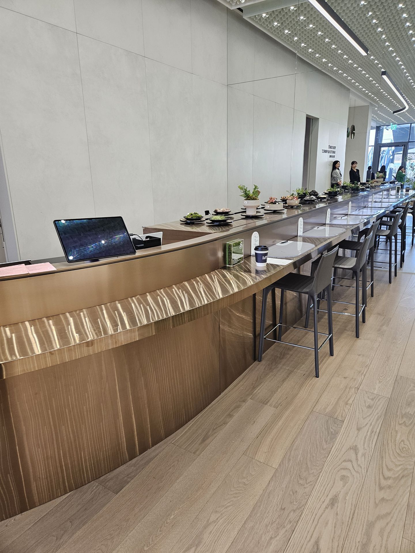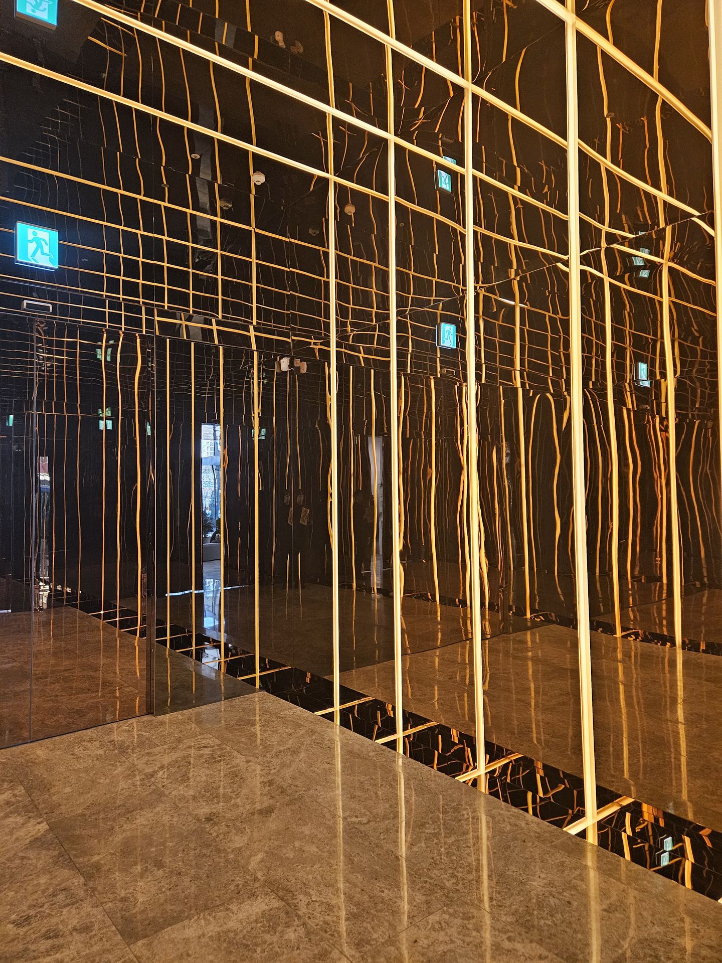 Whiskey Brown HL은 인테리어 선반과 세부적인 가구 요소에 적용하여 고급스러운 포인트를 주었습니다. Whiskey Brown MR은 복도 벽면에 사용되었으며, 따뜻한 톤의 노란색 조명과 교차 배치되어 독특하고 세련된 분위기를 연출했습니다.