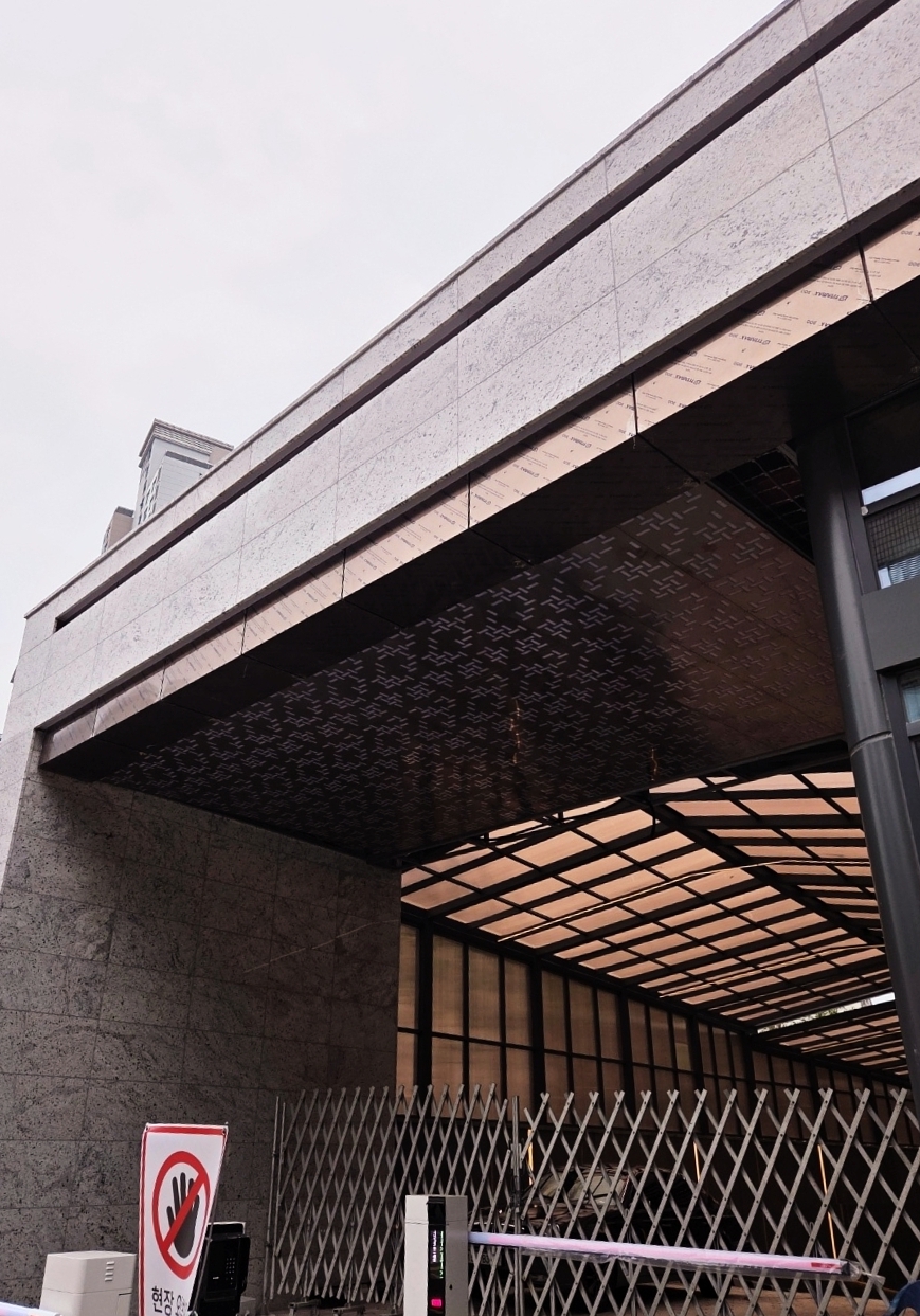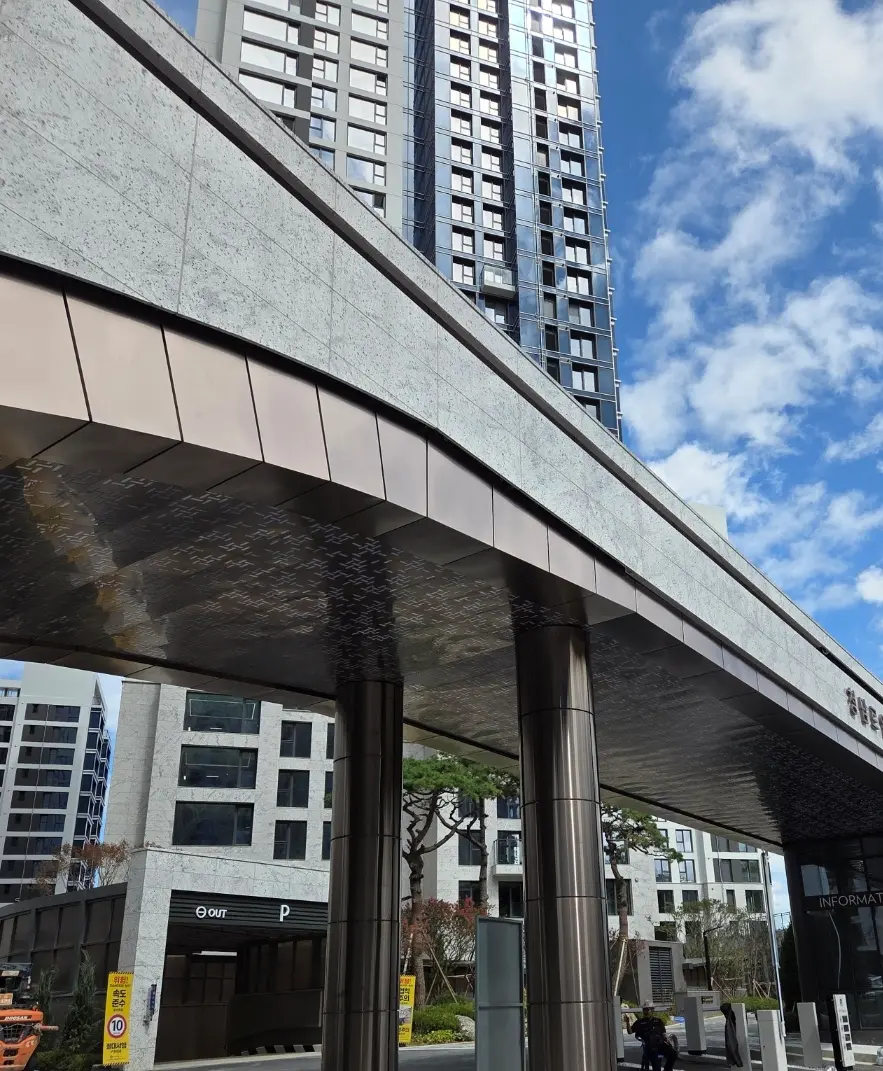 Oak Brown MIST와 Oak Brown HL을 활용하여 문주를 완성하였습니다. 두 가지 마감재의 조합은 서로 다른 질감과 깊이를 제공하며, 입구 공간에 입체감과 안정감을 부여합니다. MIST의 은은하고 세련된 표면이 부드러운 배경 역할을 하며, HL의 단단하고 확실한 질감이 문주의 형태를 더욱 또렷하게 드러냅니다. 이러한 대비는 단순히 장식적인 요소를 넘어, 공간의 첫인상을 고급스럽고 견고하게 완성합니다. 결과적으로 입구를 통과하는 순간부터 방문객은 품격 있는 환영의 메시지를 느낄 수 있습니다.