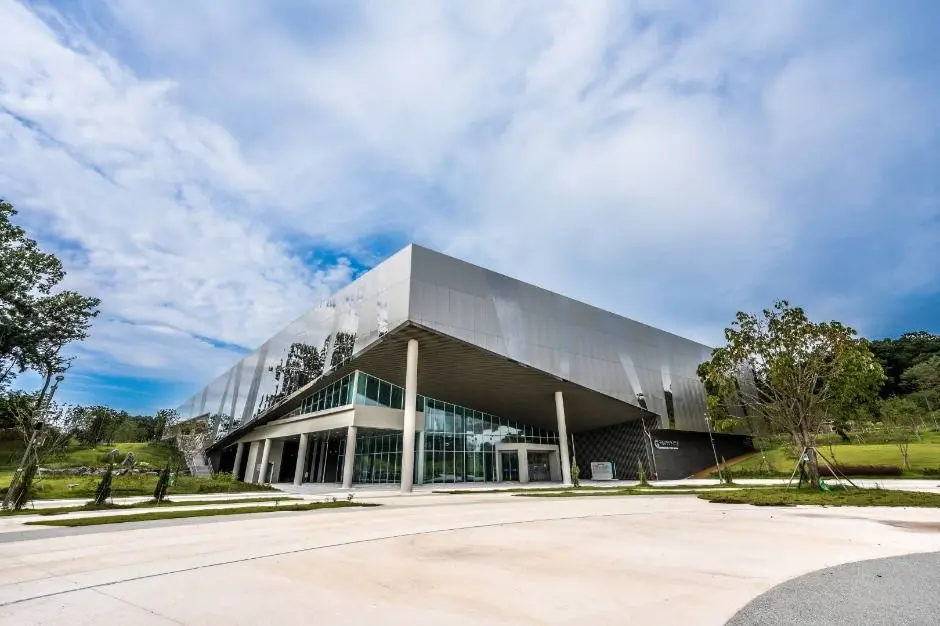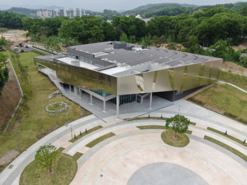 국립강원전문과학관의 외장패널을 Silver Antique 소재와 Silver MR의 조합으로 구성되어, 과학적 사고와 현대적 감각이 공존하는 이미지를 형성합니다. Antique 특유의 미세한 표면 변화는 외관에 깊이와 밀도를 더하며, 단조로움을 피하면서도 차분한 인상을 유지합니다. 여기에 Silver MR의 맑고 정제된 반사감이 더해져, 전체 외관이 보다 또렷하고 현대적인 표정을 갖게 됩니다. 두 소재는 서로 대비되기보다는 보완적으로 작용하며, 과학관이 지닌 공공성과 전문성을 함께 드러냅니다.
