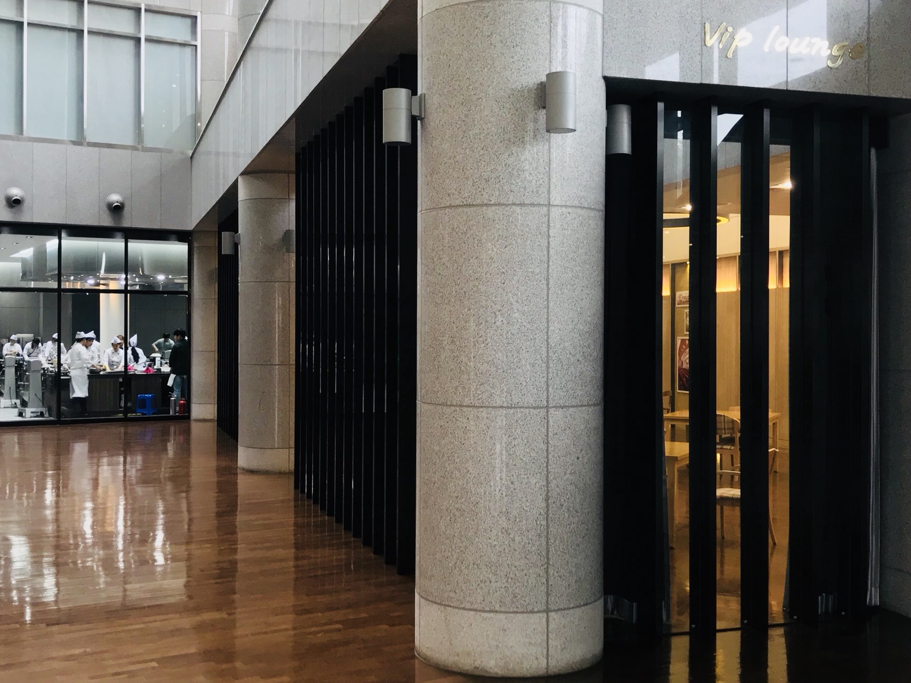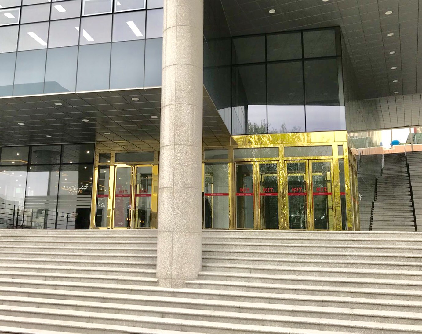 입구의 창문 틀 프레임에는 Gold MR이 적용되어, 공간에 화려하면서도 품격 있는 첫인상을 부여합니다. 금속 특유의 깊이 있는 반사와 따뜻한 골드 톤은 외부와 내부를 연결하는 경계에 빛과 온기를 더하며, 방문객에게 세련된 환영의 메시지를 전달합니다. 특히 조명과 자연광에 따라 변주되는 반짝임은 입구를 건축적 포인트로 부각시킵니다.
