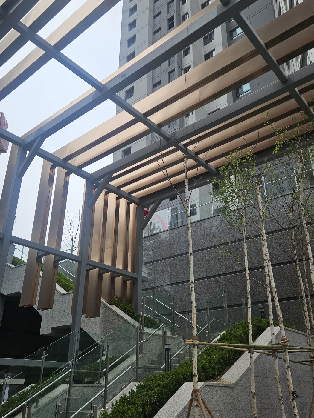 This architectural structure features Whiskey Brown MIST, delivering a refined and warm tone to the urban landscape.