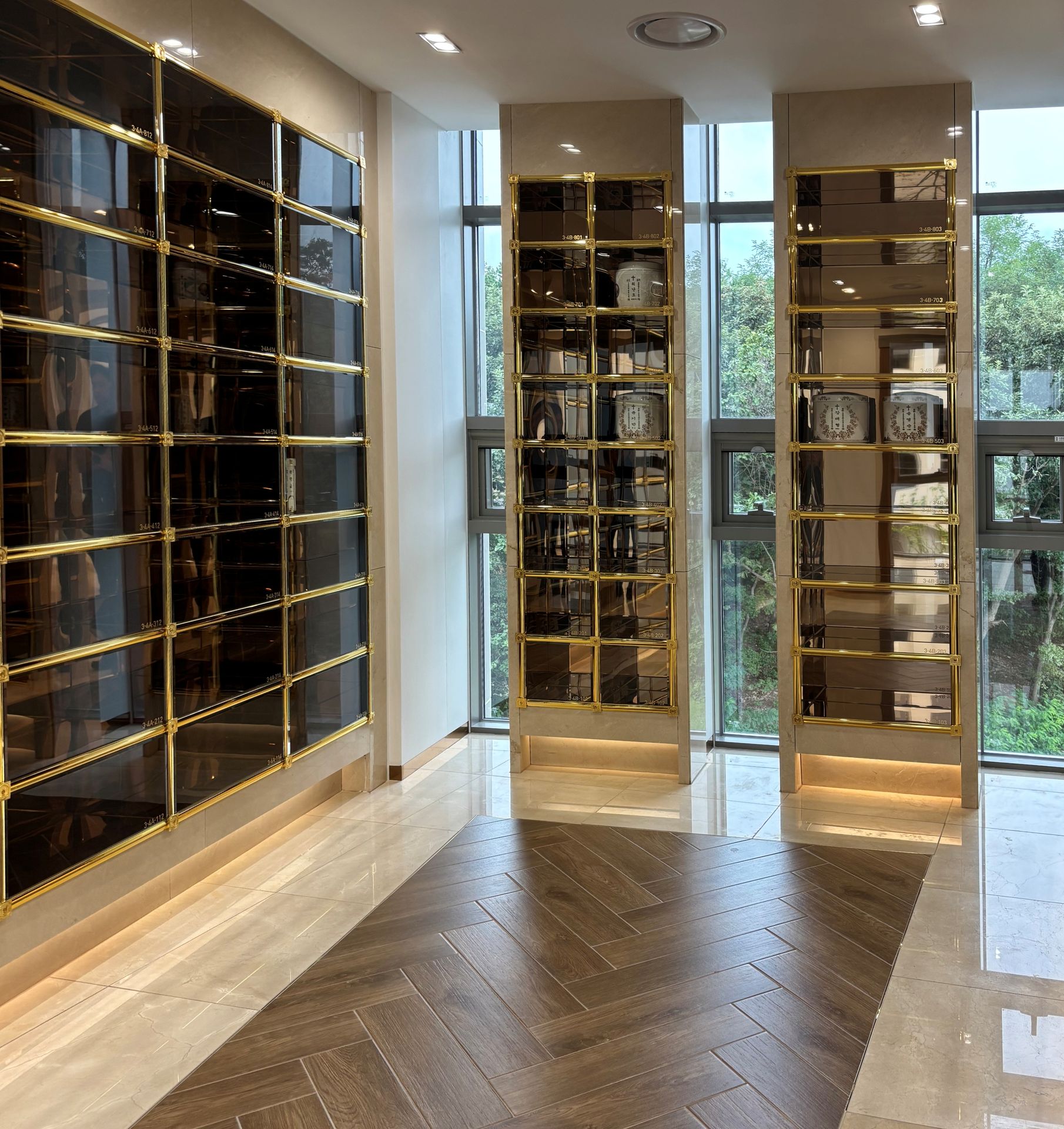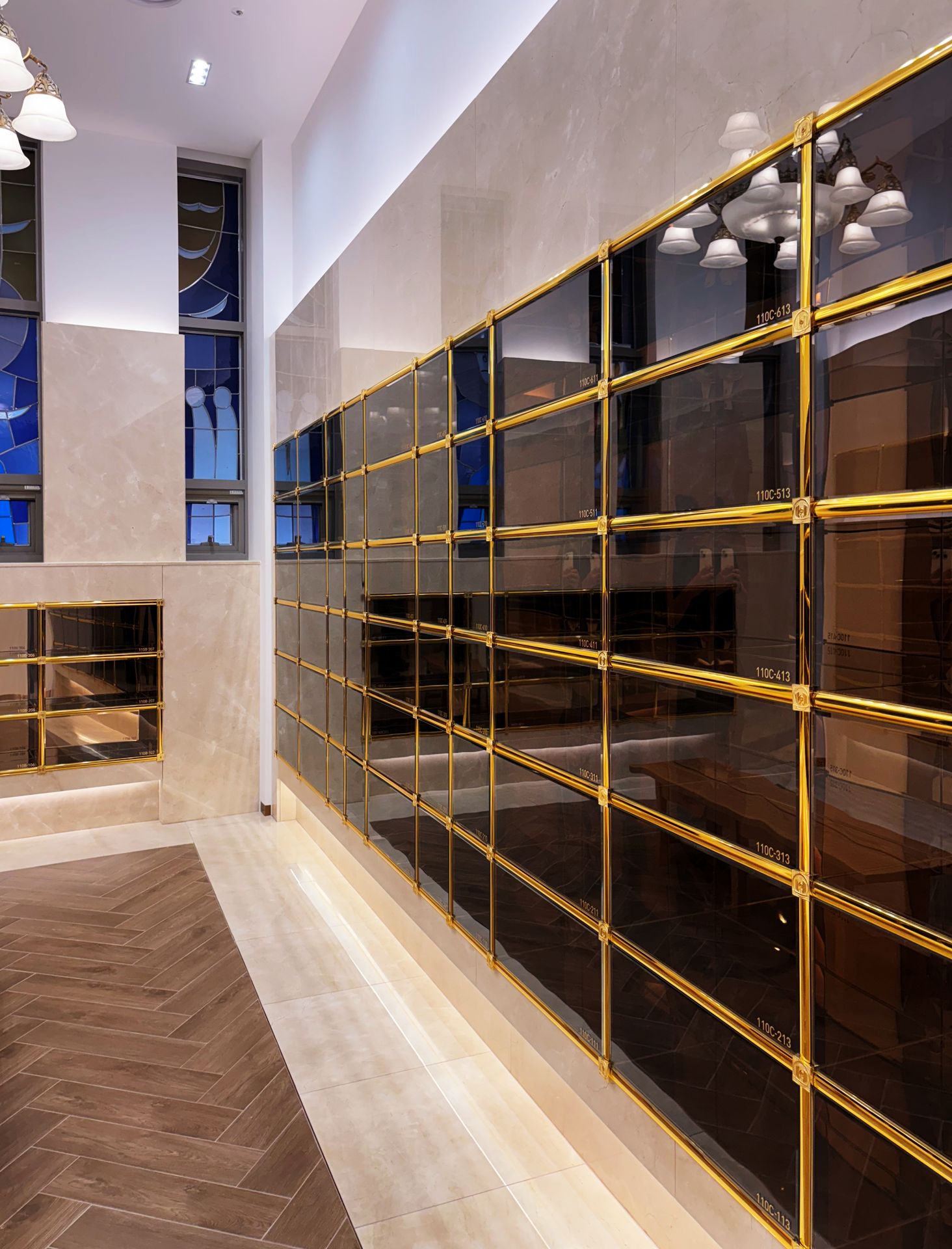 The columbarium at Haneul-mun Catholic Church features Whiskey Brown MR finishes, adding a quiet sense of weight and warmth to the interior. The material’s subtle reflectivity gently captures the indoor lighting, enhancing the solemn and composed atmosphere of the space. Rather than serving as a simple wall covering, the deep tone of the finish brings depth and calmness, embodying themes of remembrance and comfort. When paired with the interior lighting, the surface texture of Whiskey Brown MR reveals delicate variations, creating a refined and enriched ambiance. Through this design, the columbarium becomes a place that conveys both serenity and dignity to its visitors.