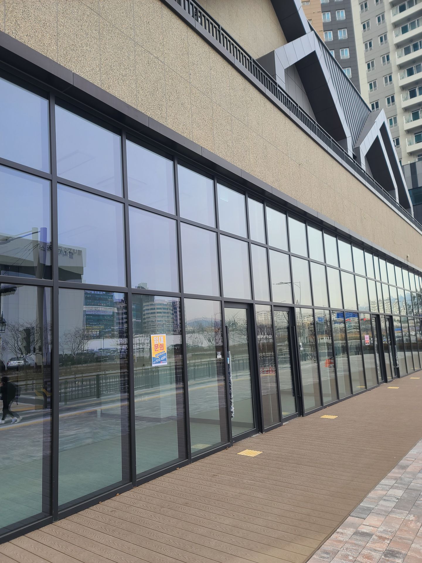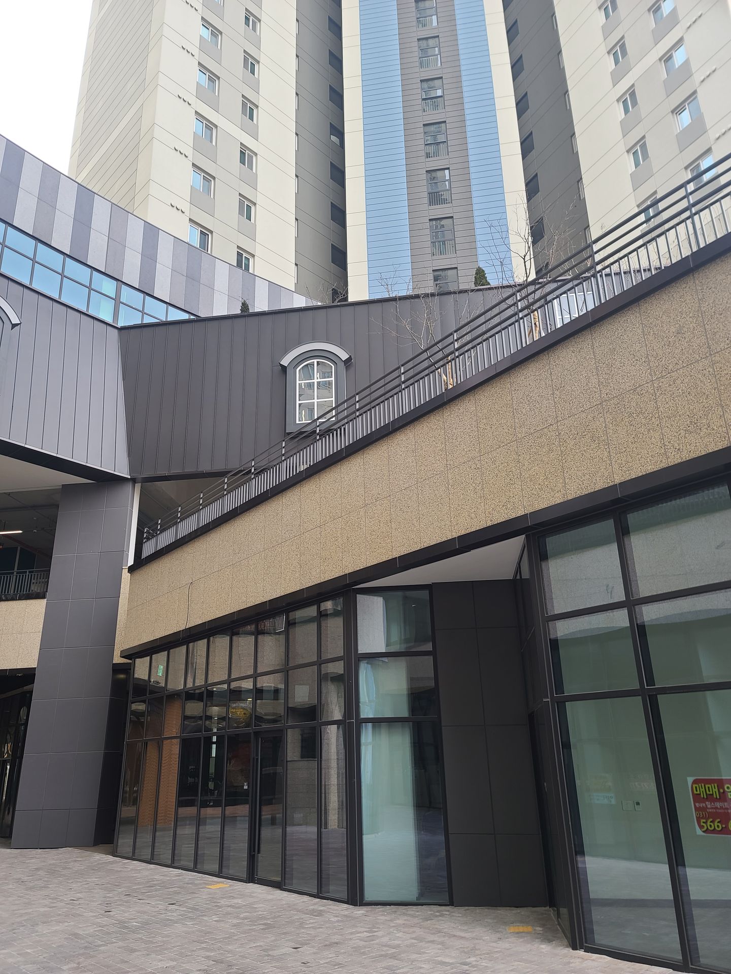 The Galaxy Black HL finish was applied to the storefront glass wall frames of the building. Its deep black tone conveys a modern and stable atmosphere, while the interplay of light reflections and shadows enhances spatial depth. The glazed frames create the impression of a curated composition, connecting exterior and interior. This finish emphasizes both urban sophistication and cohesive spatial continuity.