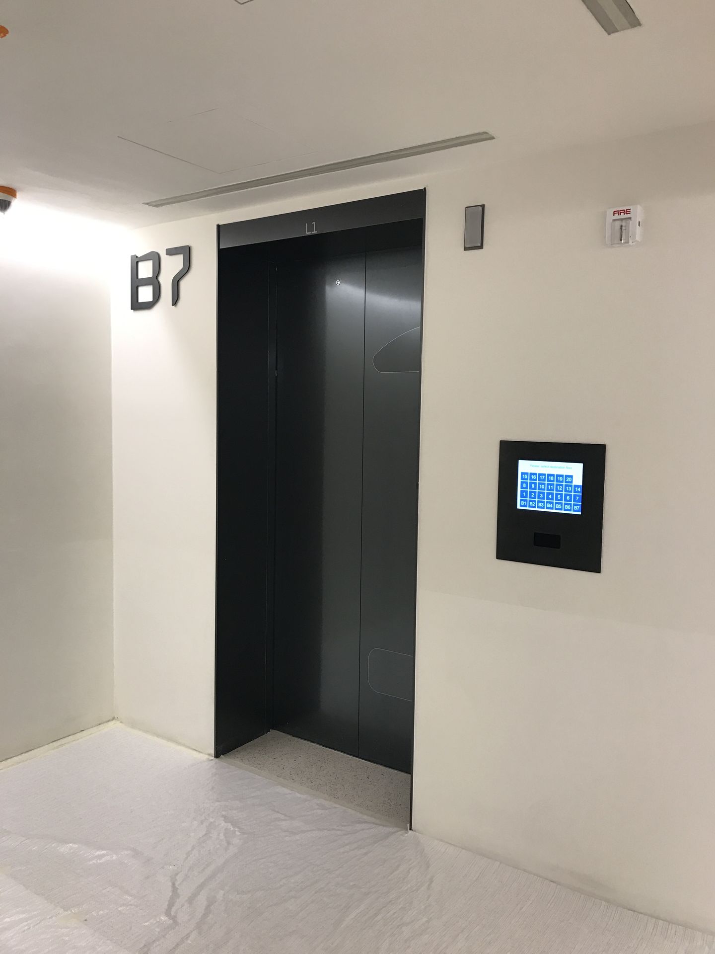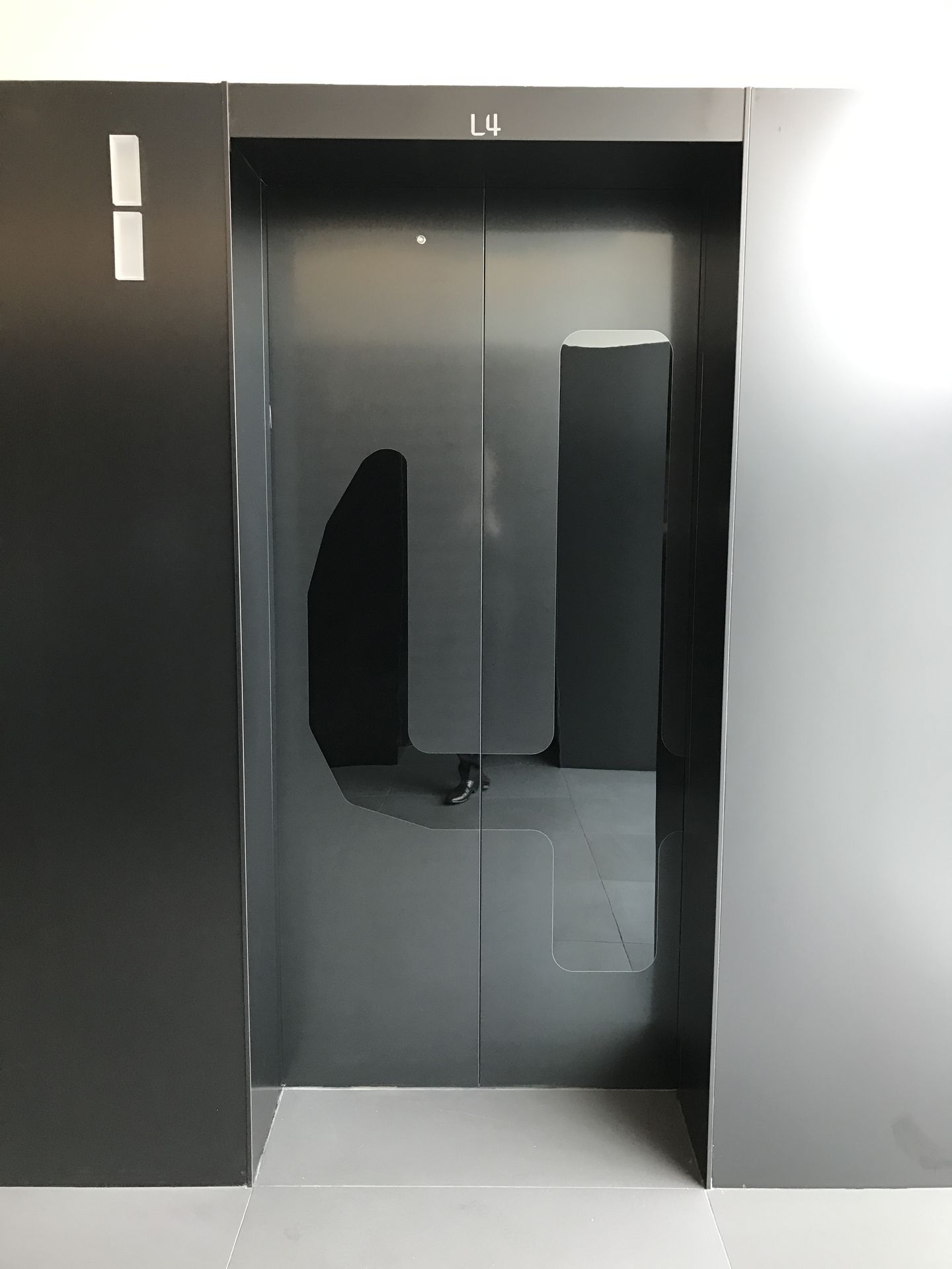 The elevator entrance and surrounding walls are finished with Galaxy Black MIST, introducing a calm yet refined atmosphere to the space. The finely textured surface creates a sense of depth, while its subtle reflection under varying light conditions enhances the visual appeal of the entry area. This finish not only ensures durability in a frequently used zone but also reinforces the building’s interior identity with a distinctive aesthetic presence.