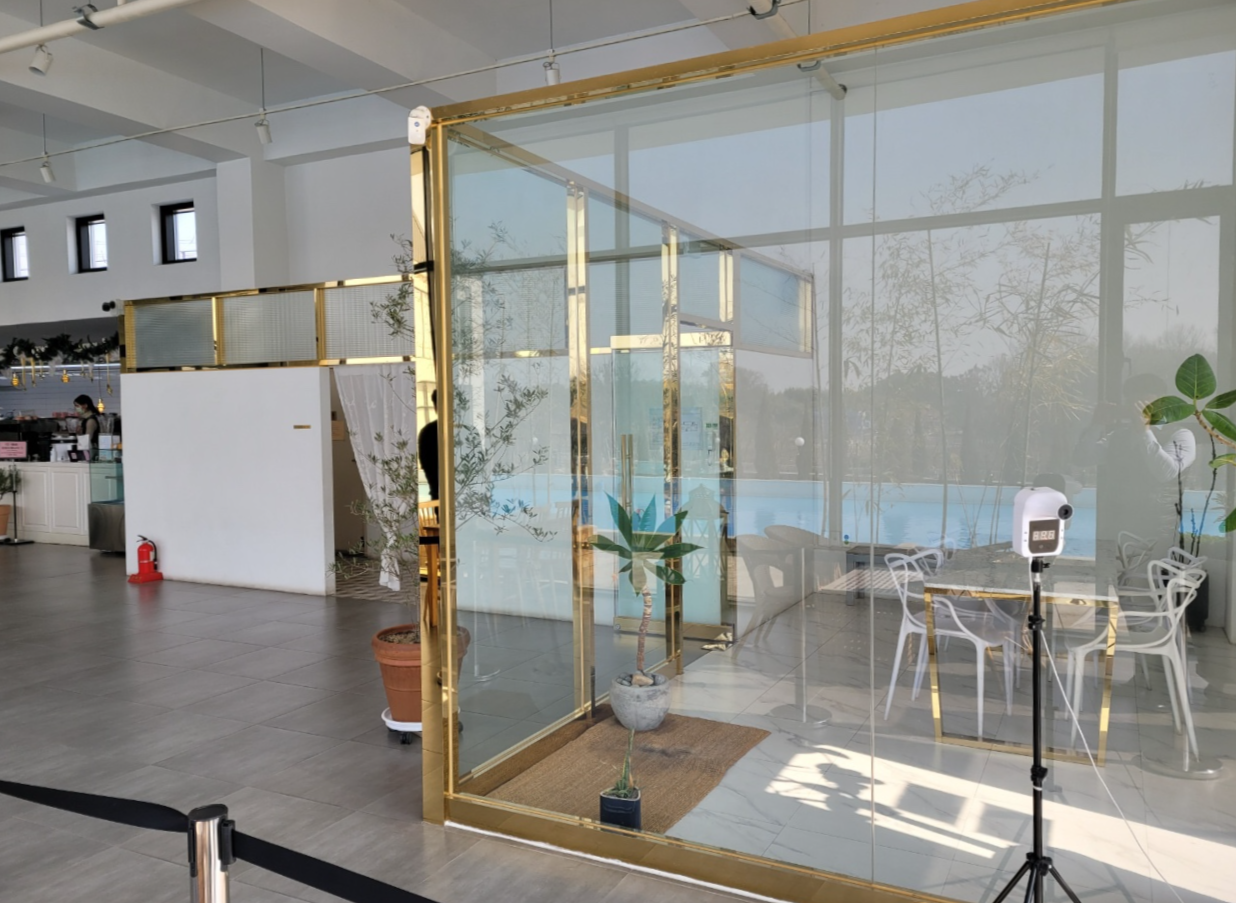 Gold MR on seating areas and partition frames bathes the café in a warm golden glow that gently encloses each zone. The surface diffuses light evenly, easing the eye and softly defining boundaries to support intimate conversation. It pairs well with wood stone and fabric, bringing the room together with a calm yet luxurious mood that suits relaxed dwell time.
