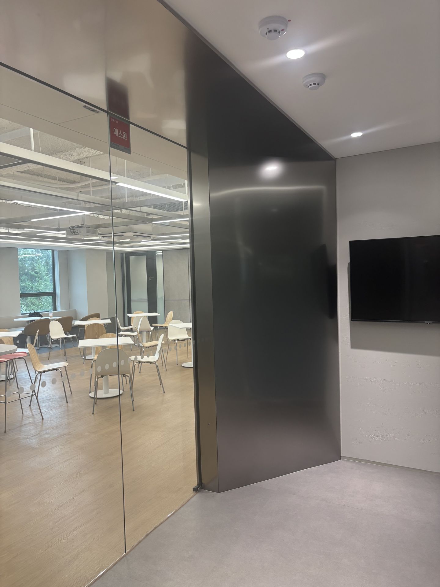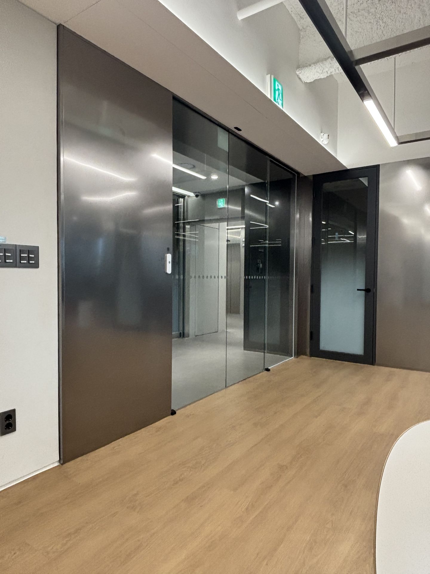 The company walls were finished with Ti-Grey MIST, creating a clean and sophisticated atmosphere. It was applied particularly to the walls next to large glass windows and between door frames, blending seamlessly with white walls and glass surfaces. The subtle gray tone served as an accent, preventing the space from feeling monotonous. A calm yet modern image was emphasized throughout. As a result, the office environment was completed to convey trust and stability.