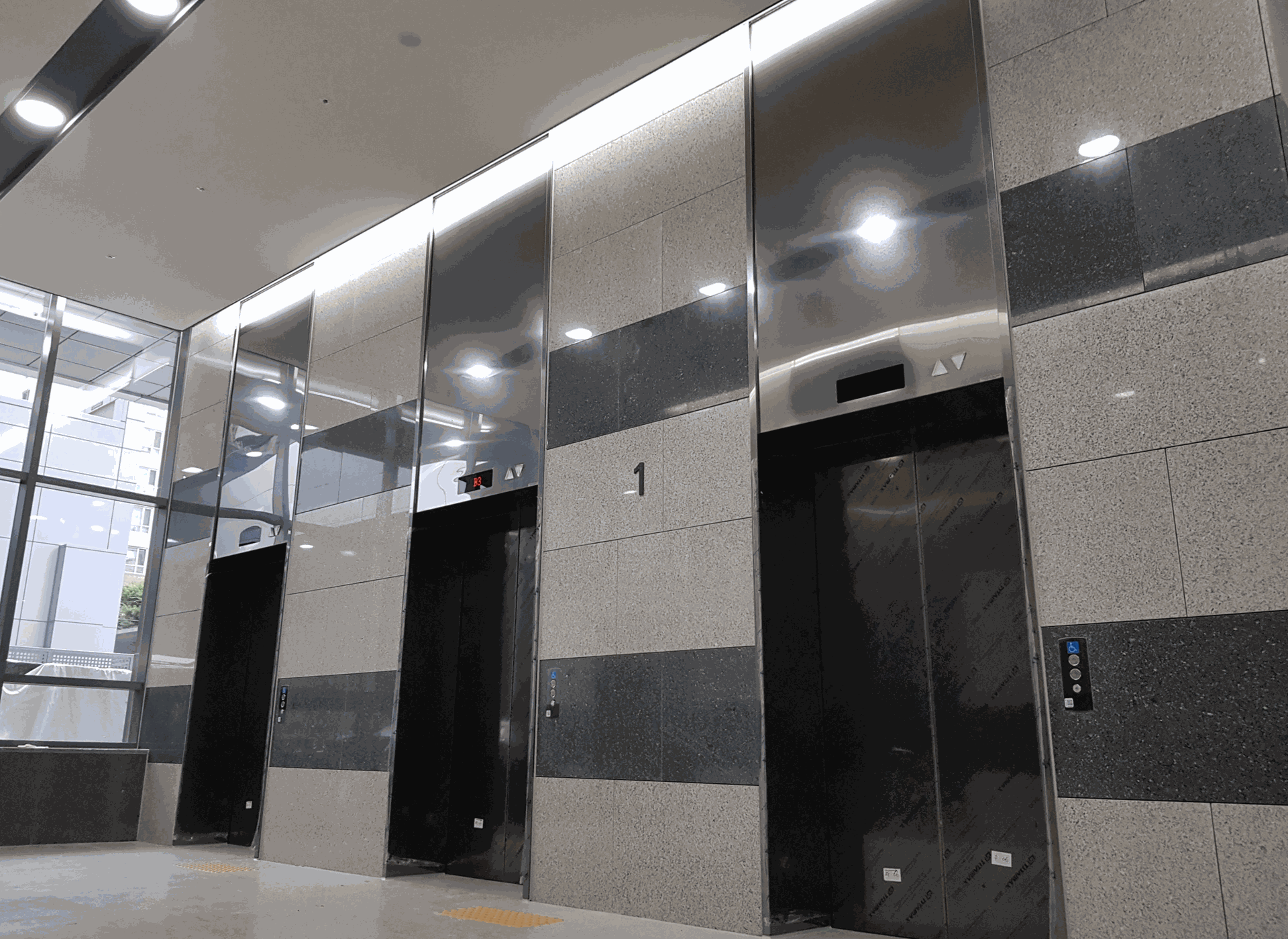 Applied to the elevator interior, Ti-Grey HANJI with vibration finish introduces a refined sense of calm through its delicate patterns and subdued texture. Inspired by the tactile quality of traditional Korean hanji paper, the surface softly diffuses light, creating a warm and embracing atmosphere. The fine linear grain produced by the vibration treatment adds depth and composure to the material, enriching the spatial experience.