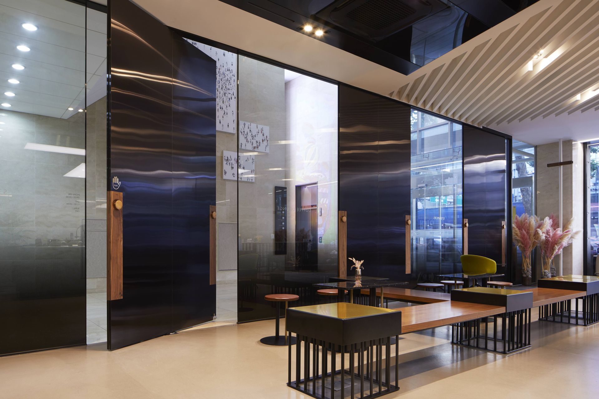 Galaxy Black HL and Gold HL bring refined luster and sophisticated texture, adding depth and elegance to the entire space. The surface created from Inco process preserves its original color and texture over time, while the smooth hairline pattern gently reflects light, creating an understated yet luxurious ambiance. As seen in real-world applications, whether used for counters, furniture, or wall panels, it delivers a calm yet striking presence that defines a polished interior.